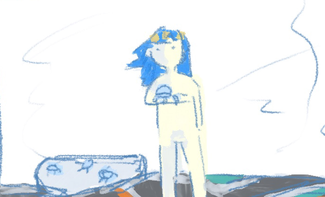 Presented here are the initial sketches that serve to inform the design of the 3D scene. These sketches follow a free form and flowing style, according to the innocent eye.